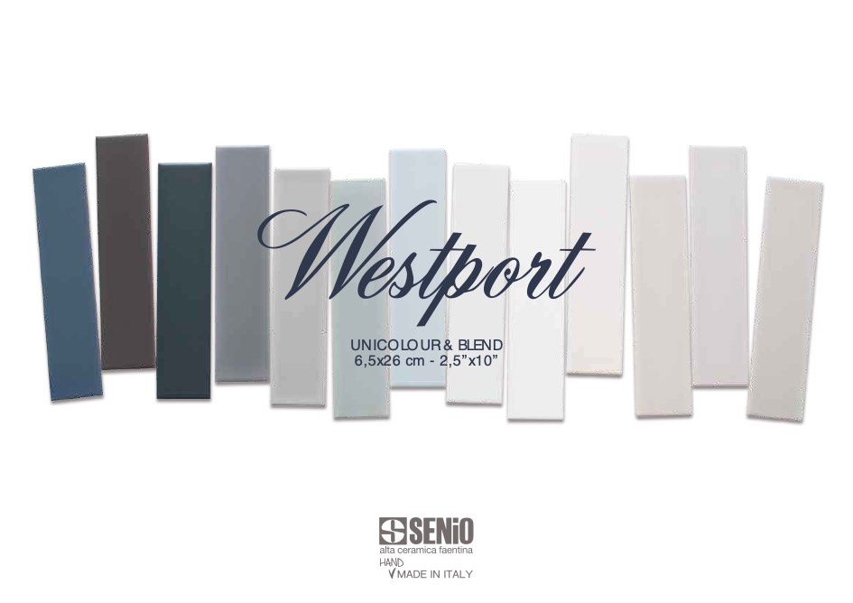 Senio westport è una collezione da rivestimento realizzata in bicottura, nel formato rettangolare 6,5x26 cm. la palette cromatica della collezione si distingue per i colori tenui e ricercati che si prestano a rivestire interni moderni e di tendenza. la collezione si caratterizza per la superficie opaca silk, che al tatto si presenta come un soffice velo di seta che invita ad accarezzarla. westport is a twice fired wall tile collection in a rectangular format 6,5x26 cm - 2,5”x10”. the colour palette of this collection is distinguished by the soft and refined colours, suitable to cover both modern and trendy interiors. the collection is characterized by mat silk surface, which to touch, resembles soft silk material.