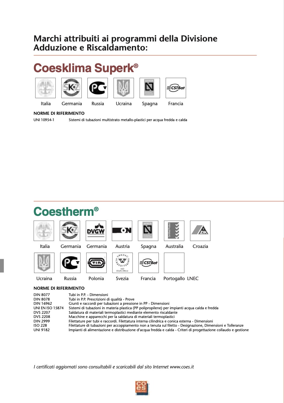 Coes marchi attribuiti ai programmi della divisione adduzione e riscaldamento: