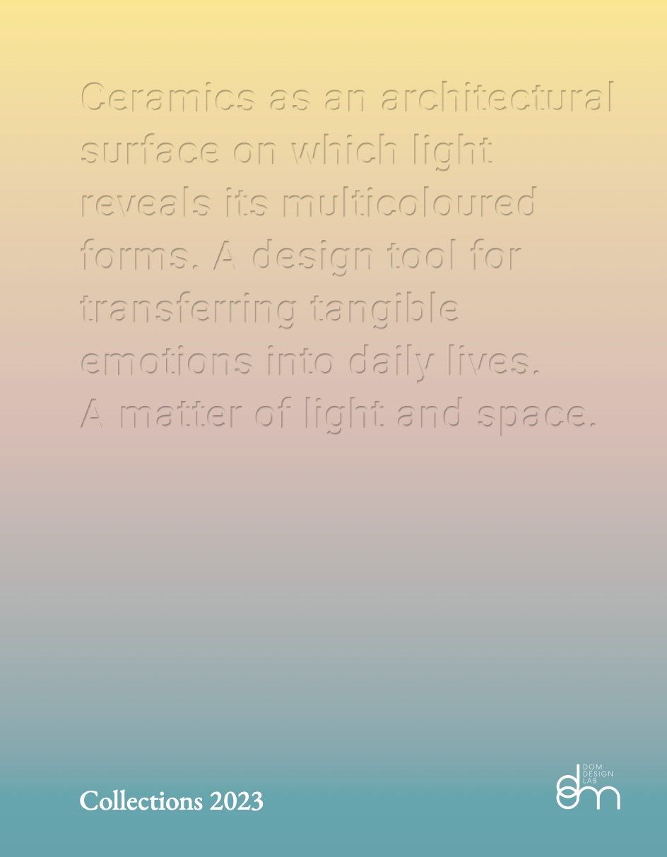 Dom faced with a much more complex world, we have thought long and hard about our identity, constantly evolved and reinforced in more than twenty years of history. today, dom design lab celebrates its approach to ceramic coverings as a brand known for research and leading-edge technology, with a dynamic business vision that focuses on design and values the creative spirits who make it possible.