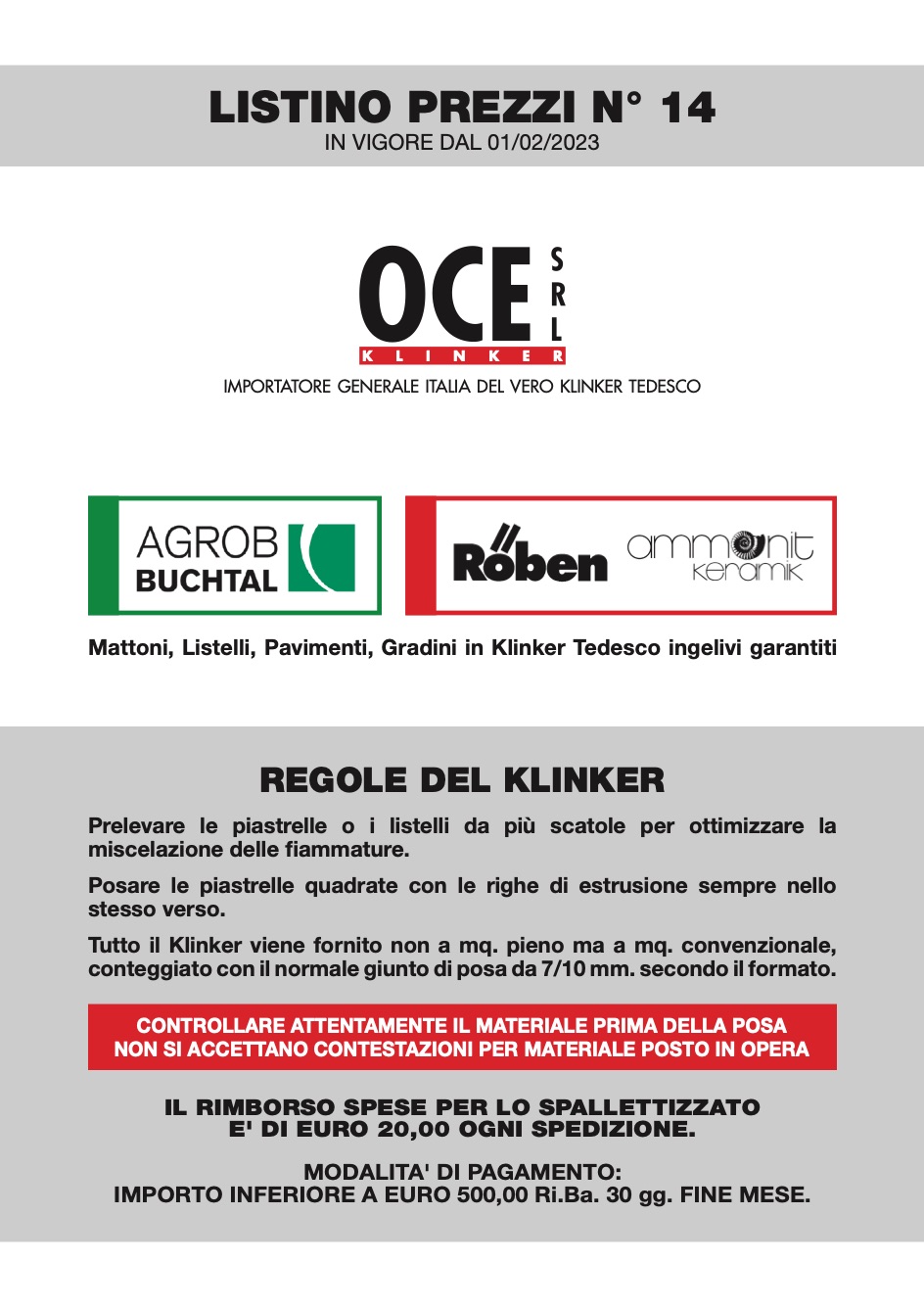 价目表 Oce | Klinker N° 14 | Febbraio 2023